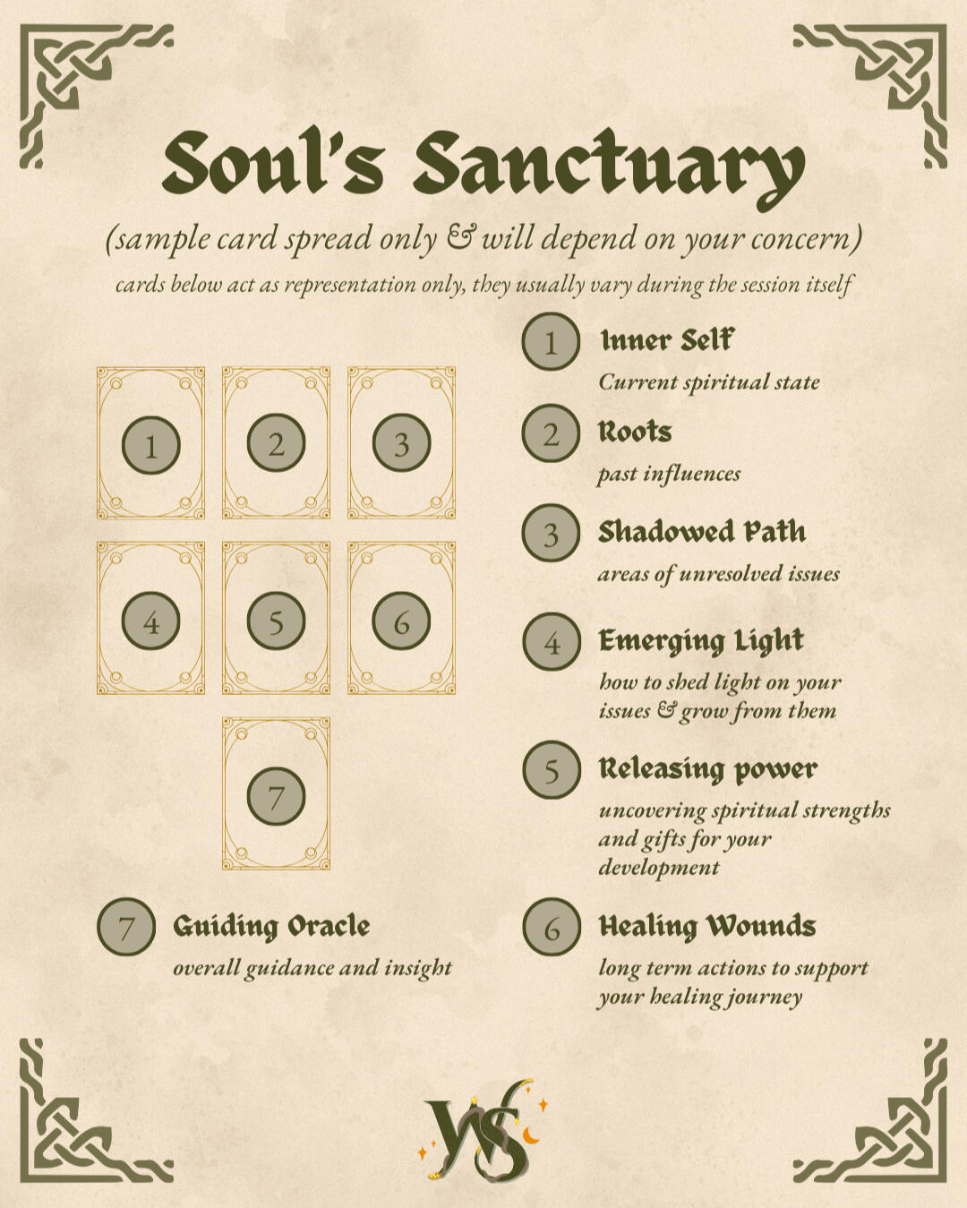 Embark on a journey into the depths of your inner self with the Soul’s sanctuary reading. This service offers profound insight into your spiritual path, personal growth, and healing journey, helping you navigate the hidden aspects of your soul. Topics can be about: shadow work, personality tree, inner child healing, chakra reading, or spiritual journey.READING FORMAT: